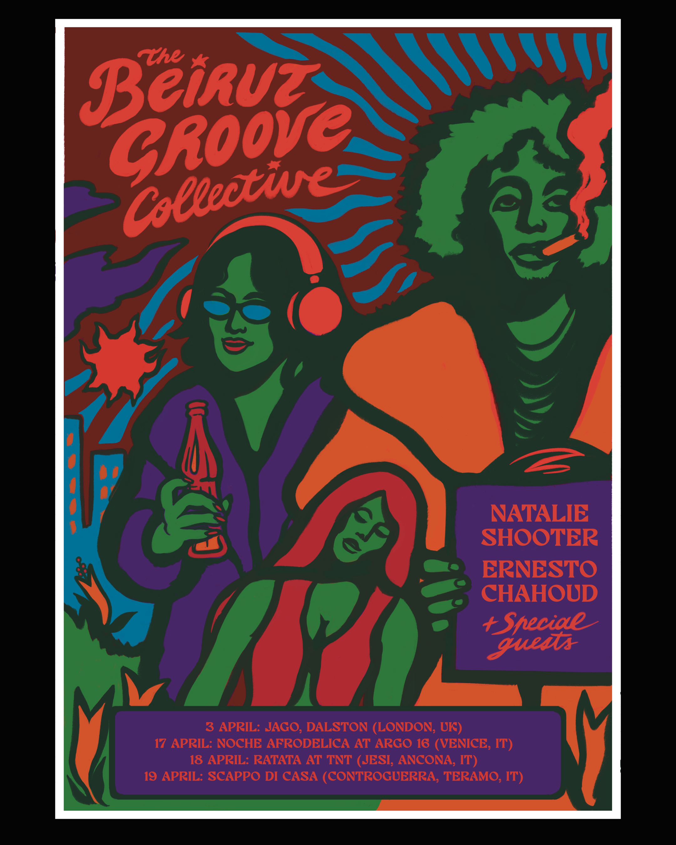 The Beirut Groove Collective is a London-based collective of vinyl DJs, crate diggers, music obsessives and artists. For over 15 years, the BGC has thrown its cult clubnight, the BGC All-Nighter in Beirut and now London, showcasing obscure and underground clubbing records from the 1960s to the early 1980s from the Middle East, Africa and around the world. The clubnight has built an international reputation for its distinctive sound and attracted some of the world’s leading DJs, turntabalists, crate diggers and record collectors. The collective plays an eclectic mix of Lebanese ‘60s Garage and Beat, Bellydance Psych, Arabic Disco, Latin Tarab, Armenian estradayin, Ethiopian and Sudanese Jazz, Rare Soul and Funk, Psychedelia and much more.